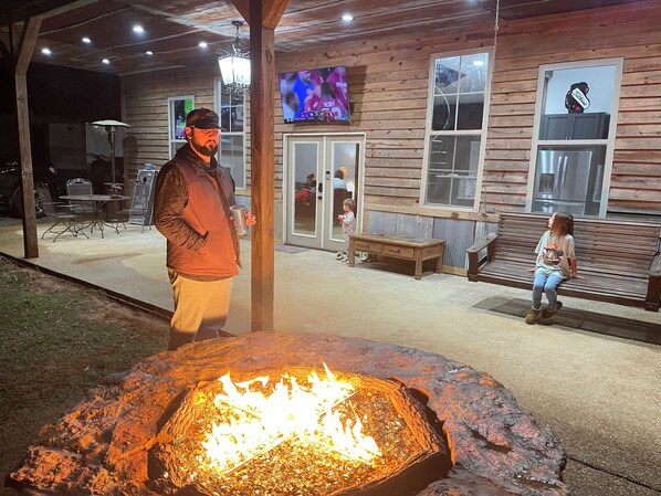 Mancave Ready for Rentals just in time for Ole Miss Playoffs or come and enjoy any occasion that brings you to Oxford! Ole Miss Sports, Graduation, Double Decker, MTrade Tournaments, Golf Tournaments or Fishing two of the best lakes in Mississippi,Birthday Parties, Baby Showers, Bachelor Parties and family events. Enjoy a private Barndominium with Ole Miss decor featuring a large front porch, with a five foot gas fire pit, outdoor grill and 65 inch tv. Inside, enjoy a open concept living area with a pull out Couch bed, 85 inch tv, open kitchen featuring scoreboard high bar, granite countertops, full size appliances including a double oven, electric stovetop, ice maker, dishwasher and fully equipped amenities.
