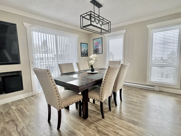 Enjoy all the amenities we have to offer. BBQ, fire pit, 75 inch TV, massive sofa with electric recliner, air conditioning, large dining table, gigabit internet, chromecast, Telus cable TV with sports package and so much more! Looking to get out of the house? Feel free to use the volleyball down by the beach or take the golf clubs to one of the nearby courses.