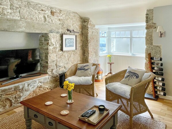 Bathroom: Bath, Toilet. Gas central heating, electricity, bed linen, towels and Wi-Fi included. Welcome pack. Balcony. On road parking. No smoking. Please note: No children under 12 years old.. Welcome to The Basket Loft, a cottage beautifully renovated to a high standard in the village of Newlyn, West Cornwall. This cottage oozes history with exposed beams and granite walls and the owners have kept the marine theme with antique brass portholes reclaimed from vintage sailing ships, as well as a silver lamp rescued from an ocean liner. The property was named because crab baskets were woven here one hundred years ago to support the famous Newlyn crab and fishing industry.