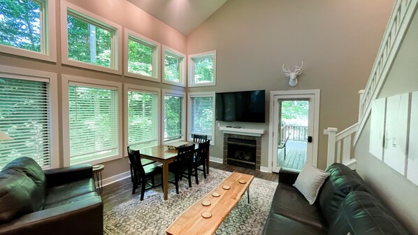 Perfect ski in/ski out location for our couple of days skiing at Boyne Mountain. We had two families plus some friends with us and all of us could spread out for sleeping. Plenty of room too for us to play games each night. Loved the fire place and the big windows to watch it snow!