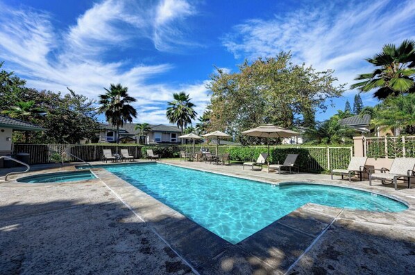 If one is sensitive to heat, as I am, you will appreciate this condo. There are mini splits in each of the three bedrooms as well as the main living area. All beds are quite comfortable. We especially love the swimming pool here. Nothing fancy, just a lovely, quiet place to swim laps, exercise or relax. Our grandson in particular likes this pool. He and his parents live in nearby Kilahuea and stayed with us off and on while we were here. The owner, Bryan, is very reachable and immediately attentive to any needs that might arise.