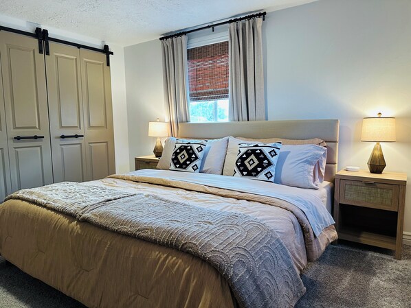 Welcome to Feathergrass Home. We hope you love it as much as we do! Focused on attention to detail, we hope you feel right at home. Accommodations include Serta memory foam mattresses, Samsung appliances, 4 smart tvs, & fully outfitted kitchen. High speed internet means you won’t miss a beat whether working or streaming your favorite movie. Shade covered backyard is the perfect spot to relax with grill, dining area, & fire pit seating area. Centrally and conveniently located near all amenities.
