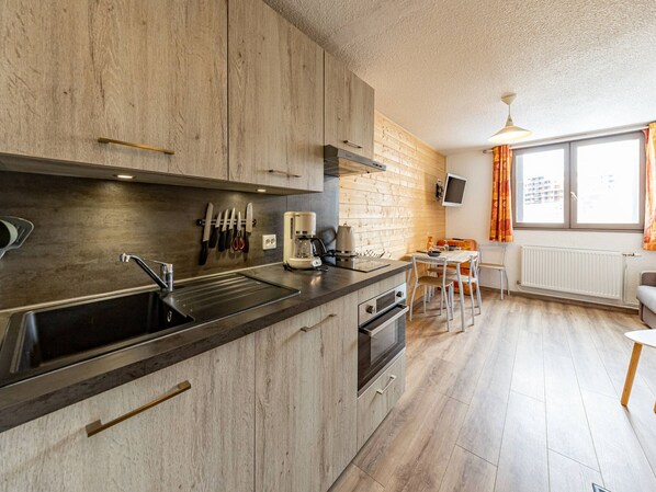 - Kitchenette: modern, fully equipped with ceramic hob, traditional oven, filter coffee maker and all necessary crockery.