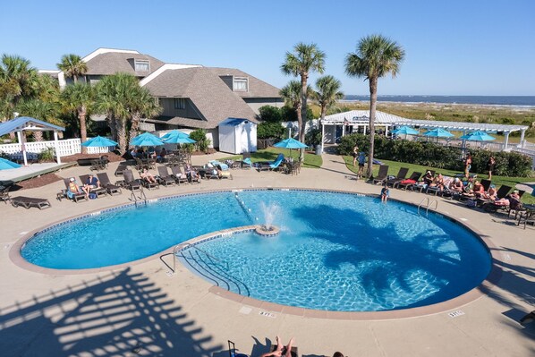 Enjoy the ocean's sounds and views while sitting on your patio.  The Middle Island location is just steps from the Beach Club's Olympic pool, adult only pool and bar, shops, fitness center, restaurants, tennis, pickle ball courts and much more.  The private pool and courtyard is the perfect place for your family to play games or watch the deer roaming at sunset after a long day at the beach.