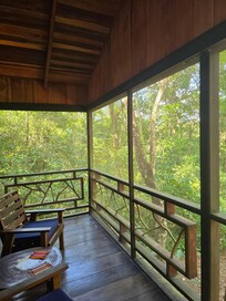 The screened-in porch was a beautiful setting to listen to the jungle sounds while sipping coffee, or Belikins.