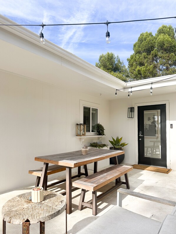 The Hill House was renovated in 2020, and recently refurnished in March of 2023. Enjoy this clean, open concept, light filled home with plenty of outdoor space to enjoy the ocean view. Dinners can be enjoyed outside on the wraparound terrace at a picnic table just steps from the kitchen with all new appliances and a prime ocean view overlooking the Channel Islands. After dinner, take a 5 minute stroll (0.4 miles) to Summerland Beach to watch the sunset. With restaurants, wineries, coffee shops and locally owned boutiques just a walk down the hill in Summerland, a stay at Hill House provides the best of both worlds: a quiet village within walking distance, and a short drive to Montecito and downtown Santa Barbara.
