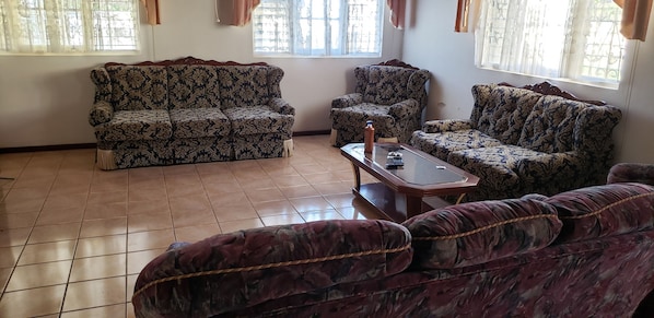 Escape to the Santa Cruz mountains in this spacious 2-bedroom house, perfect for a family getaway. Enjoy a beautiful view of the mountains from your living room or venture out to YS Falls, 7 miles beach in Negril, and Jamaica Zoo within minutes.