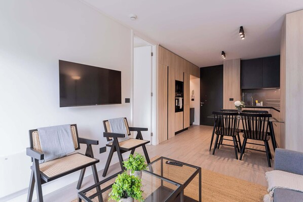 This modern one-bedroom apartment blends style and functionality in one of Santiago’s most sought-after locations. Designed for couples or travelers who value comfort, it features a private terrace with city views—perfect for unwinding after a day of exploring or working. The fully equipped kitchen makes it easy to prepare meals at home, while the bright and cozy living room creates a relaxing atmosphere. A private bathroom and well-organized layout ensure a comfortable stay. Guests also have access to a swimming pool, gym, and shared spaces that complete a high-quality urban experience.