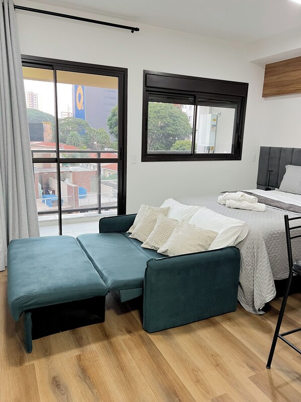 Furnished studio apartment near the US Consulate, Interlagos, Morumbi Shopping Mall, and Brooklin metro station.
