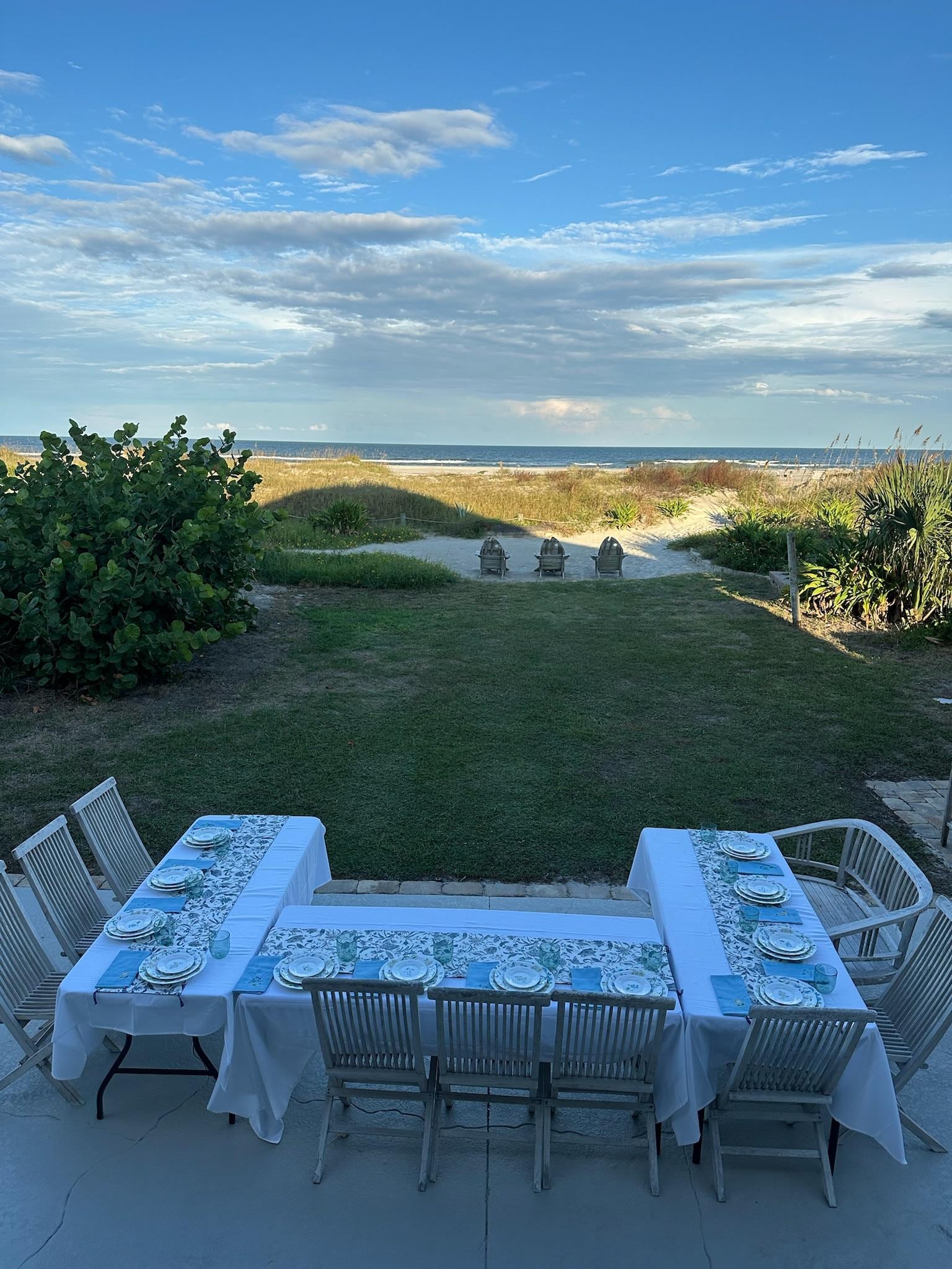 First, the Ocean is " Right At Your Doorstep”. There are no long dunes or raised boardwalks with a 5-10 minute walk to navigate with the cooler & chairs before you ever get to the water like at Butler Beach to the South.