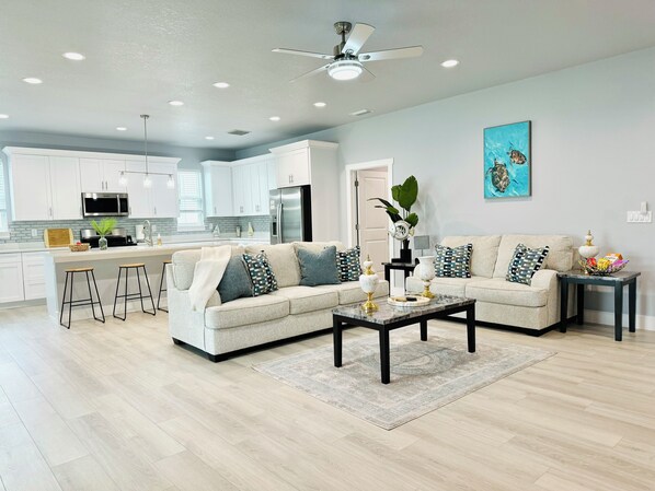 Our spacious Four-bedroom, 2.5-bathroom home is designed with contemporary elegance and equipped with all the amenities you need for a memorable stay.