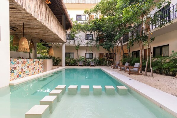 Spacious modern 3-bedroom condo in Aldea Zama with premium finishes, a lush pool, and easy access to restaurants, shops, and Tulum’s beaches.
