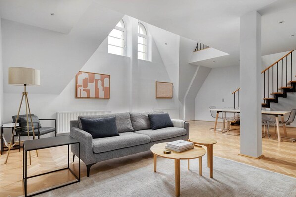 Located in Vienna's vibrant 4th district, this modern apartment offers a stylish living room and fully-equipped kitchen. Unwind with the premium wireless speaker or smart TV, and enjoy in-apartment laundry for added convenience. Take in the city views from this three-bedroom retreat.