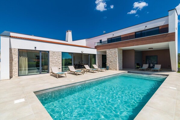 Nestled in the peaceful surroundings of Vodnjan, surrounded by olive trees and Mediterranean greenery, Villa Chiavalon combines modern design, authentic Istrian charm, and comfort that can be felt in every detail. This elegant villa with a private pool and a beautiful sea view offers complete privacy and the perfect setting for a relaxing holiday with family or friends.
