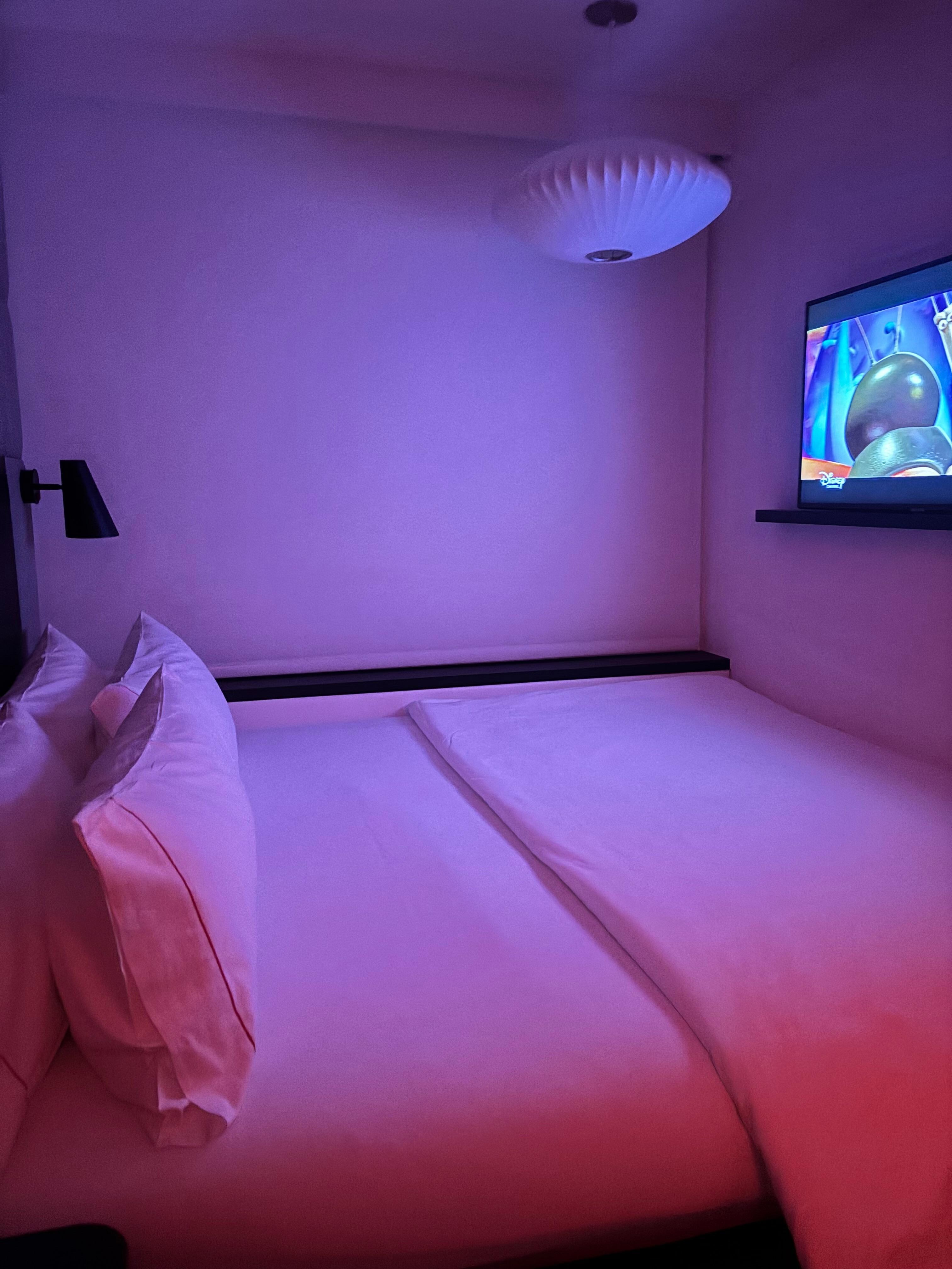 The rooms are really small did not understand that it was a micro room and the refrigerator didn’t work. Everything needs controlled by a broken tablet.
