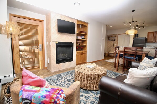 Relax, unwind and have an amazing Rocky Mountain getaway? Yes, please! Relax on your private porch with direct outside ground floor access and enjoy watching skiers come down the cat track or ride the gondola. Enjoy apres-ski in the Base Village or by your private gas fireplace or make s’mores by the fire in the Village. Unwind and relieve sore muscles in the shared hot tubs (spa towels and robes provided).