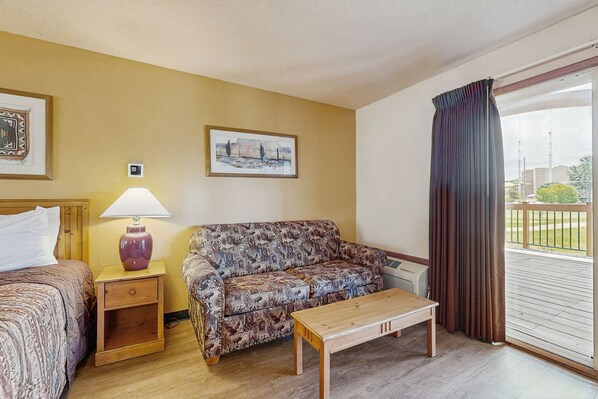 Relax in a hotel-style condo in the heart of the Chula Vista Resort! This condo is set in an ideal location away from the hotel hustle and bustle - but you're still close to everything. Central air-conditioning and room-darkening shades will help keep everyone comfortable during your stay - pop in a DVD whenever you want to kick back! The kitchenette will help you cook up small meals and store leftovers from your local culinary adventures. Who's ready to explore?