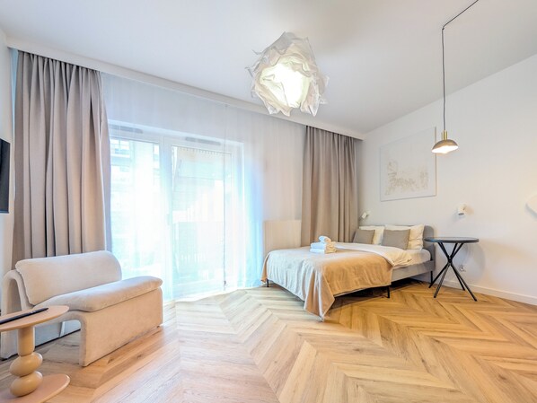 Czysta Chic Harmony Studio provides everything that you need. Guests can connect to in-room WiFi.