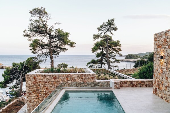 This family-friendly Alonissos villa is located by the ocean, within a 15-minute walk of Roussoum Gialos Beach, Léna and Sparínes. Patitiri Beach and Patitiri Harbour are also within 1 mile (2 km).
