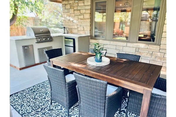 Forget your worries in this spacious and peaceful space. This Austin Stone Oasis is a beautifully updated 1948 charmer. Our three bedroom, three bathroom home has amenities for every traveler. The outdoor kitchen is perfect for grilling! We have desks in every room plus a WiFi printer for your use. SUPER comfortable mattresses in every room. Two cozy living and dining spaces to accommodate everyone. Fast Wifi and large smart TV’s… There is nothing you won’t find in this luxury home!