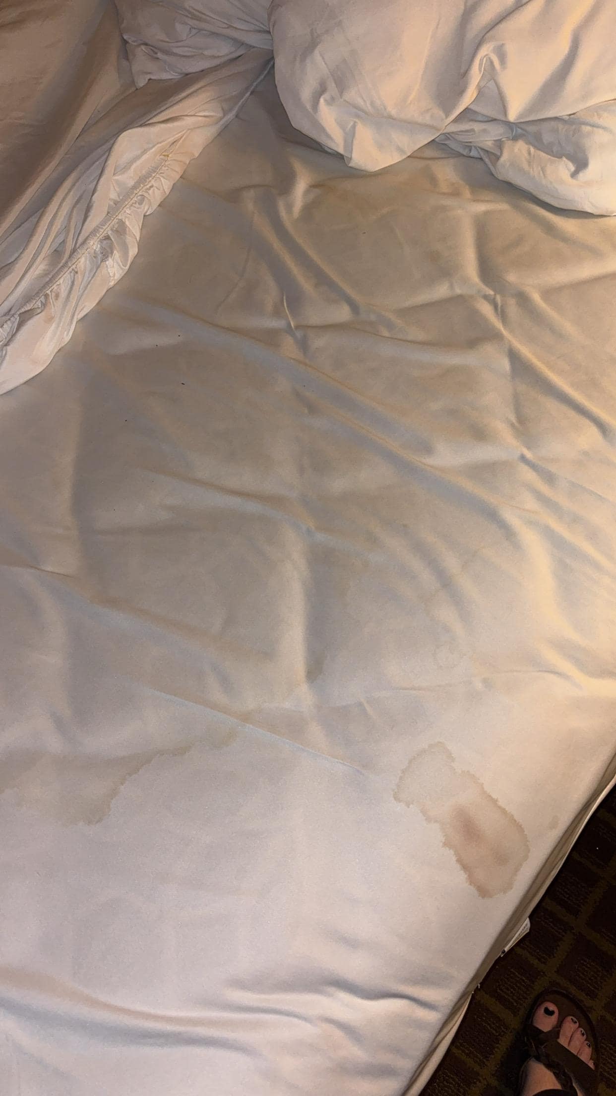 I will never in my life staying in a place like this before. It looked like there was blood on the curtains. The smell gave me a headache and had my nose and throat burning. This was the worst experience of my 46 years of life. Due to flight cancellations and all the hotels were booked we had no choice but to stay my daughter slept in the chair the whole time after we went to the gas station and bought disinfected spray. My sheets and pillows had stains on them. My bed had hair in it. Should I say more?