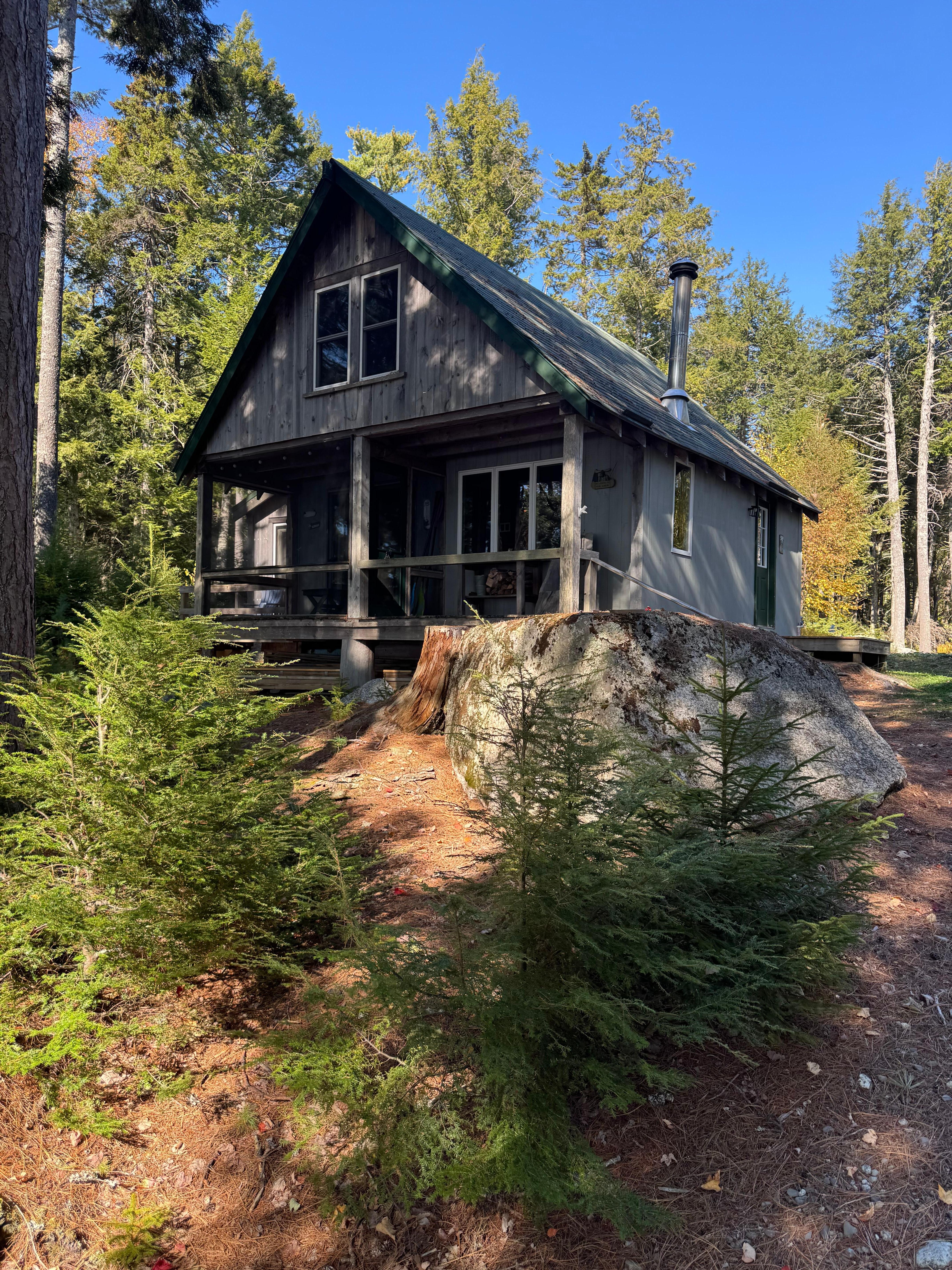 A cozy authentic Maine camp on Spectacle Pond in Osborn that sits among the hemlock in trees near the waters edge. Enjoy beautiful sunsets, camp fires, swimming, fishing, and kayaking. Relax on the screen porch at night while listening to the loons. Adventure outside the camp to a public sand beach, accessible by foot at the very end of Hemlock Way or enjoy a longer walk to a nearby river. ATV trails are also conveniently located.
