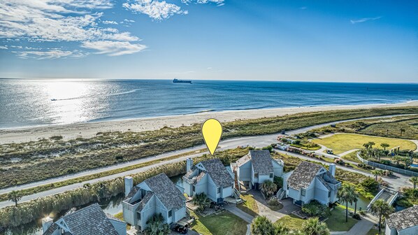 Enjoy this ocean front villa located in the heart of Bald Head. Being in walking distance to the BHI club and the beach access make it convenient to enjoy the islands great amenities. Listen to the waves on your own front deck or the take in the views from the living room. By the kitchen is a queen bedroom with a hall bath that has a shower/tub combo. Enjoy the queen master oasis with its own attached bathroom with a walk-in shower. The upstairs loft has a half bath, queen bed & bunk bed which has a full size on the bottom and a twin on top. The best feature for the upstairs has its own private deck to take in the ocean views from the top floor. Enjoy cruising the island in a 4 pass cart that is proved with the rental. Come "Sea" Us at The Eagles Nest!