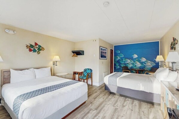Each room presents a unique, sea-themed interior with recent upgrades like new flooring and Serta Beautyrest mattresses. Kick back to watch favorite TV shows with Roku's available for signing into your personal streaming services. Perfect for keeping beach snacks handy, the kitchenette includes a mini-fridge, microwave, and coffee maker.
