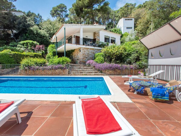 L'emplacement de la maison est idéal , à 5 min à pied de la plage de sa riera. La maison possède un très beau jardin avec une piscine privée. il y a un grand garage pour une voiture accessible depuis la carer mas malto et il est aussi possible de se garer dans cette rue. Le jardin est très grand et traversant avec un double accès depuis carer mas malto et carer de sa riera. La piscine 8* 4 est très bien et assez profonde ( 1m30 à 2m). Par contre la literie est vielle ainsi que le mobilier rustique comme précisé dans la description de la location ce qui explique le prix raisonnable de cette location.