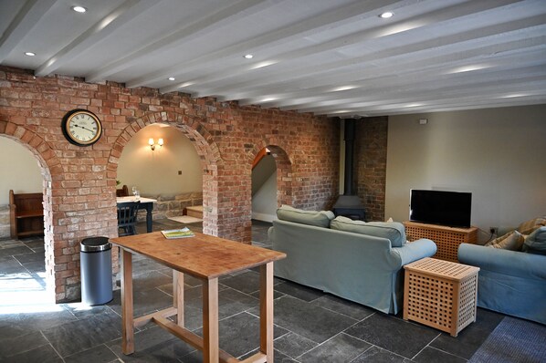 A spacious, dog friendly, country cottage with riverside walks and a pub nearby.