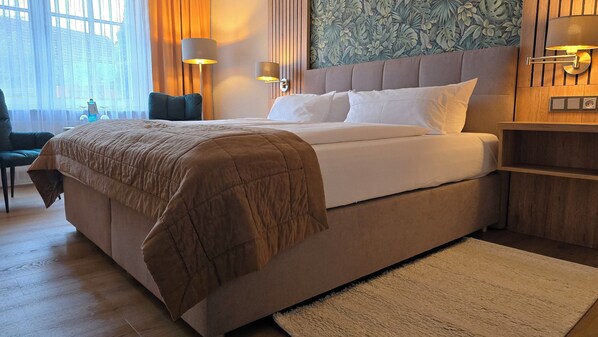 尊荣双人房 | 高档床上用品、迷你吧、办公桌、隔音