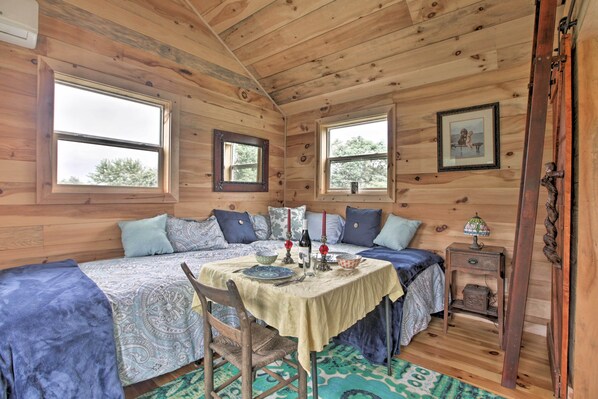 Enjoy seasonal vegetables and eggs from owners garden and walks/hiking on site. Floyd Va (Floyd Festival) is 21 miles away for sightseeing, hiking, kayaking. Chateau Morrisette Winery is approximately 30 miles away off the Parkway. Roanoke is 26 miles and Rocky Mount is 10 miles. All the towns offer farmers markets, restaurants, bars for those seeking some night life.