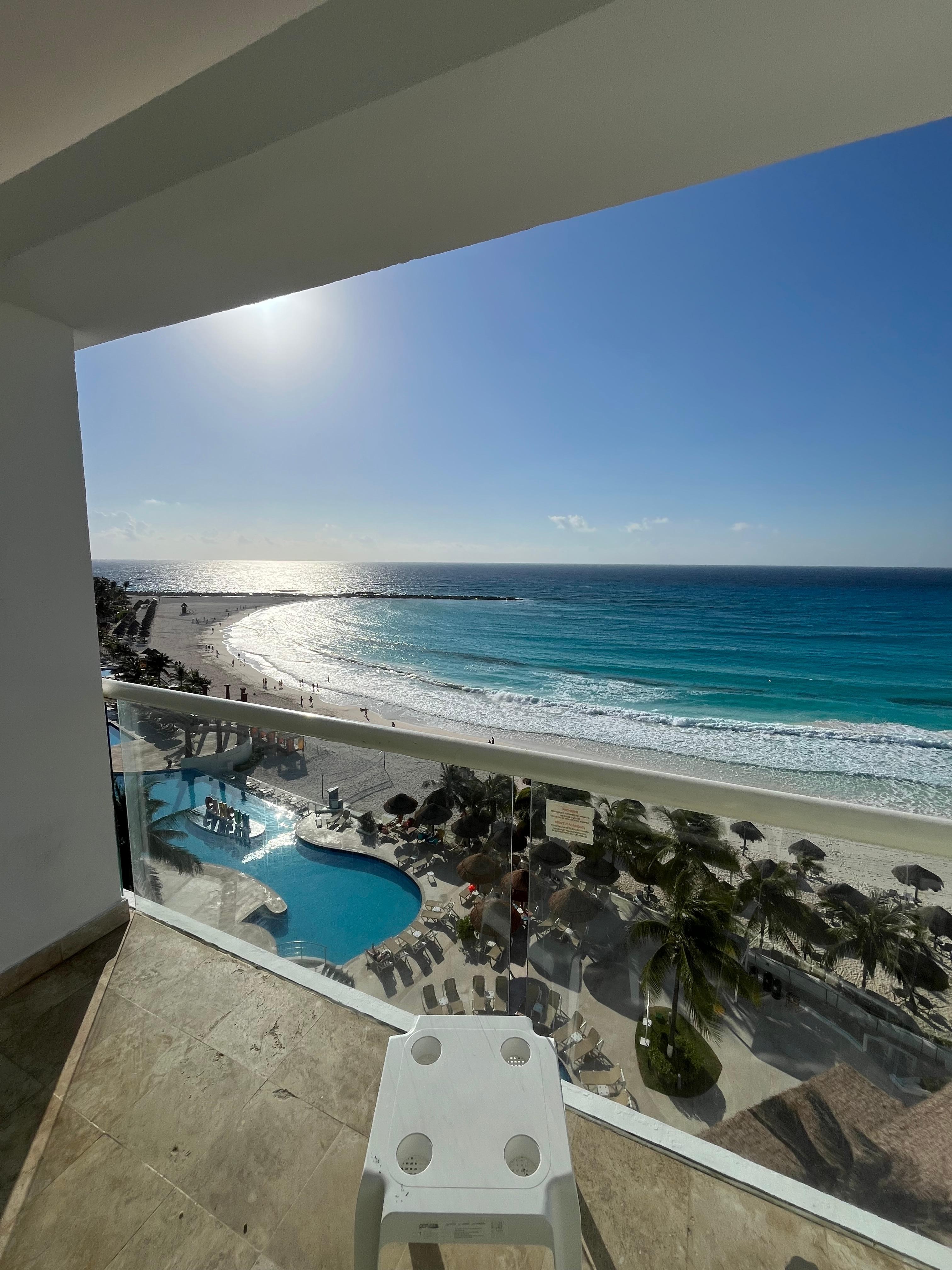 Muy bonita vista de la playa, Aire acondicionado bien, excelente servicio, la playa con poco acumuló de sargazo, el mar no tanto oleaje permite nadar, se llega caminando a los club de baile/antros clásicos de can cun (coco bongo) todo +++++