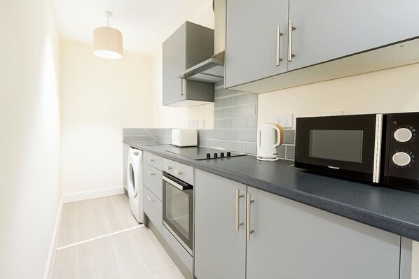 Guests Love • 🛏️ 1 comfortable bedroom – triple single room • 🛋️ Relaxed lounge with Smart TV & fast Wi-Fi • 🍳 Full kitchen with everything needed for long stays • 🧺 Washer & ironing facilities • 💻 Business-ready Wi-Fi • 🛁 Large bathroom with fresh towels • 🛏️ Sofa bed in the living room (sleeps 1 adult or 2 children) • 🏡 Modern, clean design with hotel-quality linen