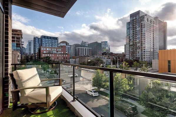- Private rooftop patio with TV and dining area with INCREDIBLE views of downtown.