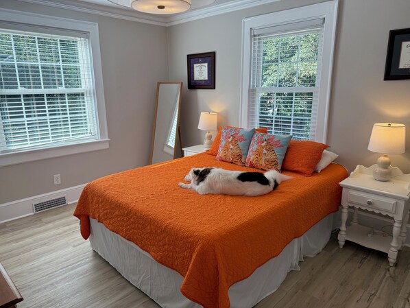 Ideal location! It's a10-minute walk to downtown Clemson, about the same to Death Valley, and just a few minutes further to core campus! The walk to all destinations is through a beautiful, wooded neighborhood. The main floor of our house has an open-plan kitchen / family room, two bedrooms both with en suite bathrooms, and a large covered porch and uncovered deck. The upper floor has two more bedrooms that share a common bathroom.