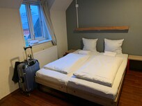 I've stayed in a lot of dorms in a lot of countries but never ever have I gotten a double bed. The mattresses could be pulled like 15cm apart in the tiny room but it was still a little too close for comfort. When I addressed it at the reception and said that there was like no privacy, the receptionist looked at me and said patently "it's a hostel". I know - but usually at least you get your own bunk!