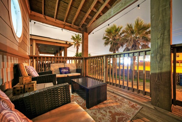 Outdoors, a spacious deck with comfortable seating and sunrise views await. Here, you can feel the sea breezes while enjoying your favorite summer sip. Relax, indulge in your favorite book, listen to the gentle sounds of the waves, or simply bask in the sun's warmth - Peyton's Place provides the perfect setting for ultimate vacation bliss.