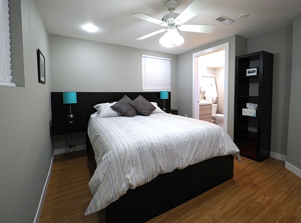 Well-stocked kitchen with gas stove, coffee machine, and dishwasher. FREE Private laundry for guests. Comfortable King size beds in 2 bedrooms, Queen size bed in the other 2 bedrooms .