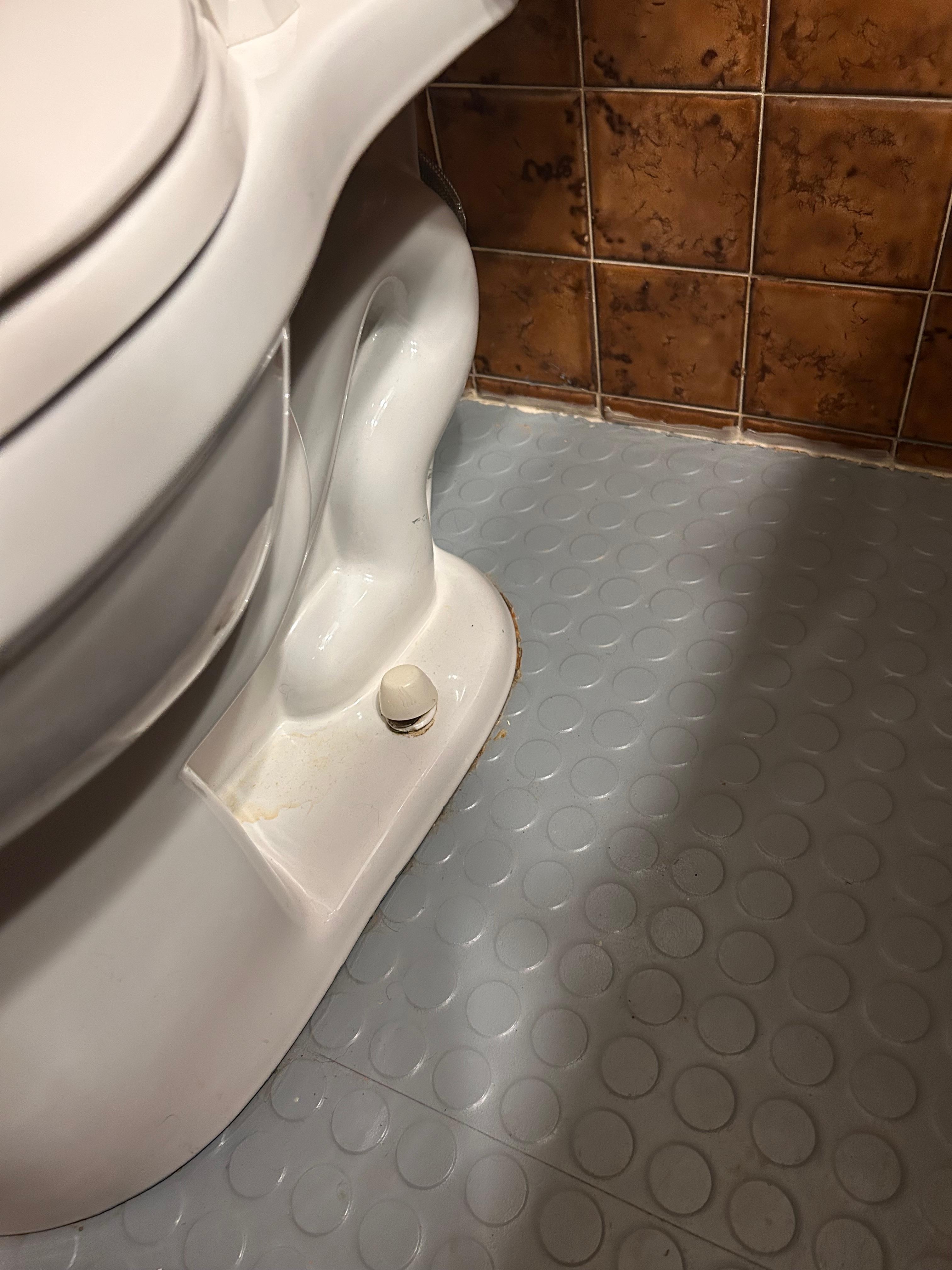 Dried urine on both sides of the toilet