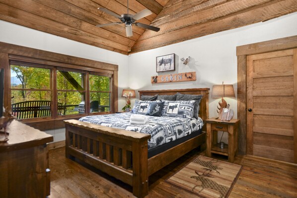 This cabin was all we hoped that it would be! There were three couples, and all three master suites had king beds and fabulous bathrooms. The common areas allowed for plenty of seating to relax, the kitchen was very well stocked, and the views were awesome. We had a few questions when we first arrived and Steve was very communicative with getting those questions answered. I would highly recommend!!