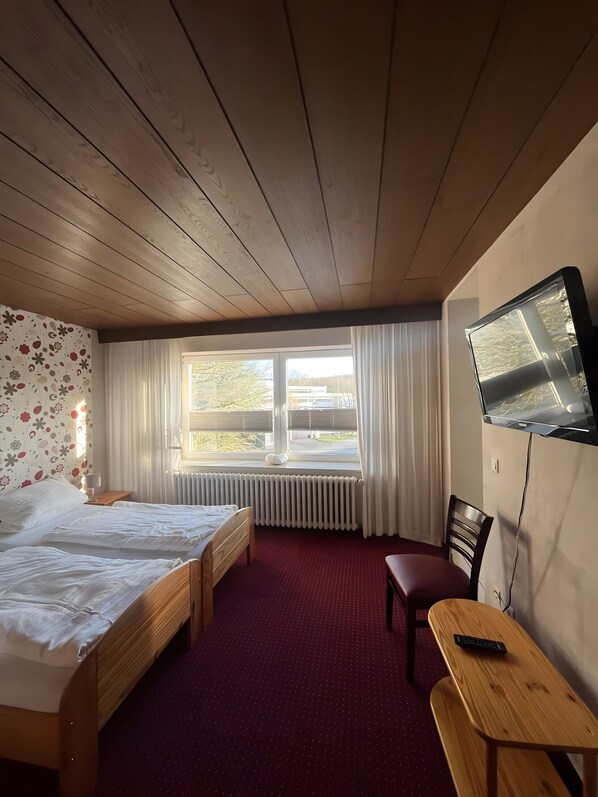 Room Zimmer 1 in Extertal offers 25 sqm of space for up to 2 guests. You have 1 bedroom and 1 bathroom with shower available during your stay. The room includes a hair dryer, TV, wardrobe, nightstand, and a small desk for your convenience. You also have access to a private balcony. This accommodation provides essential amenities for a comfortable stay.