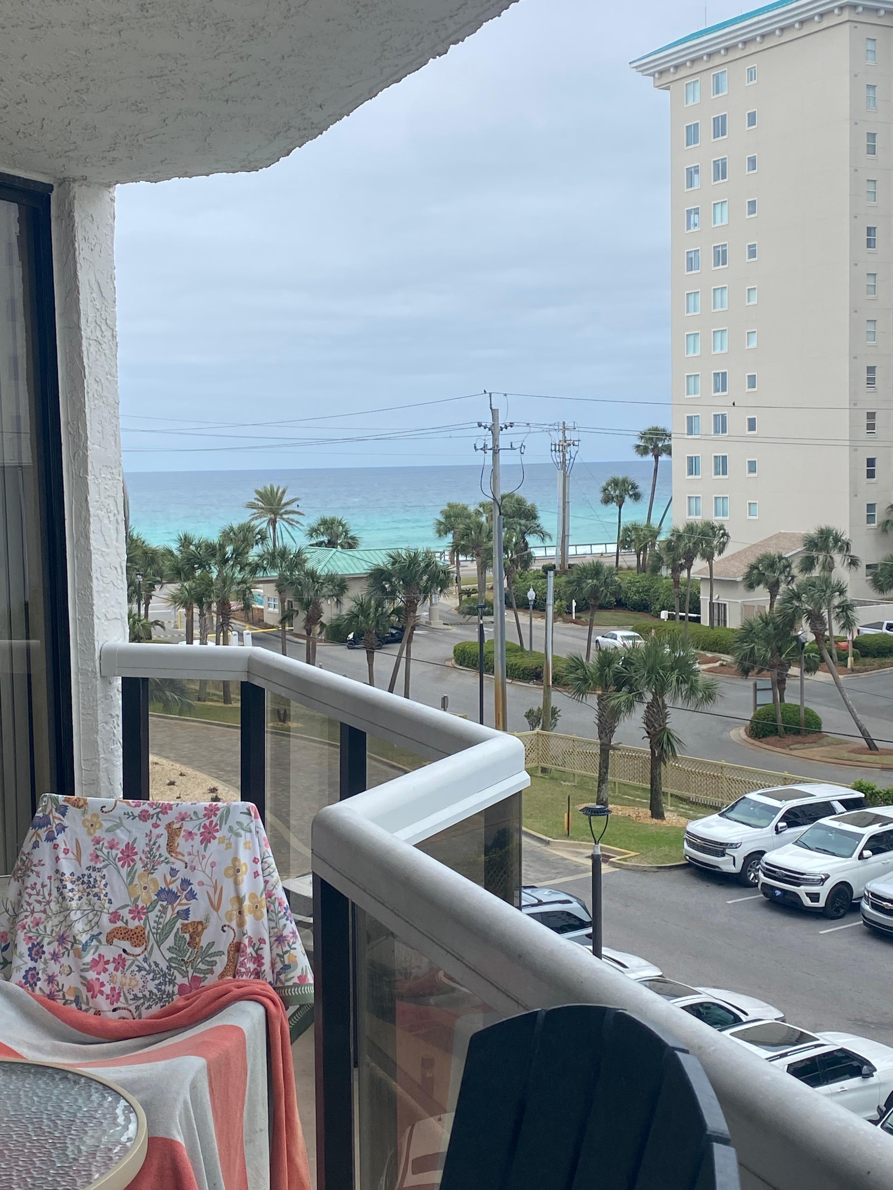 The living area has a flat screen TV, and DVD player. The condo has a unique floor plan with partial views of the Gulf of Mexico. The large balcony gives you a views of beach as well as breathtaking sunset views.