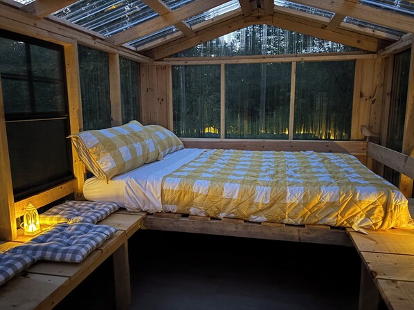 Located in Geneva, The ultimate Lovers Hideaway!! Enjoy what this 1-bedroom cabin has to offer. Nestled in a serene setting, guests can unwind and relax. Amazing views or the starlit skies, the view of the moon, might see a glance at aurora borealis. Experience what Geneva has to offer with a stay at our cabin. We our off grid!! We provide lighting and solar/battery fans