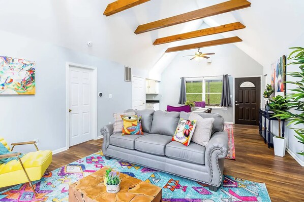 Dogs are welcome to join the getaway, provided they are up to date on their rabies vaccination as required by Jefferson County. Cats are not allowed due to allergies. Free parking on the premises and self‑check‑in via lockbox make arrival smooth for you and your furry companion.