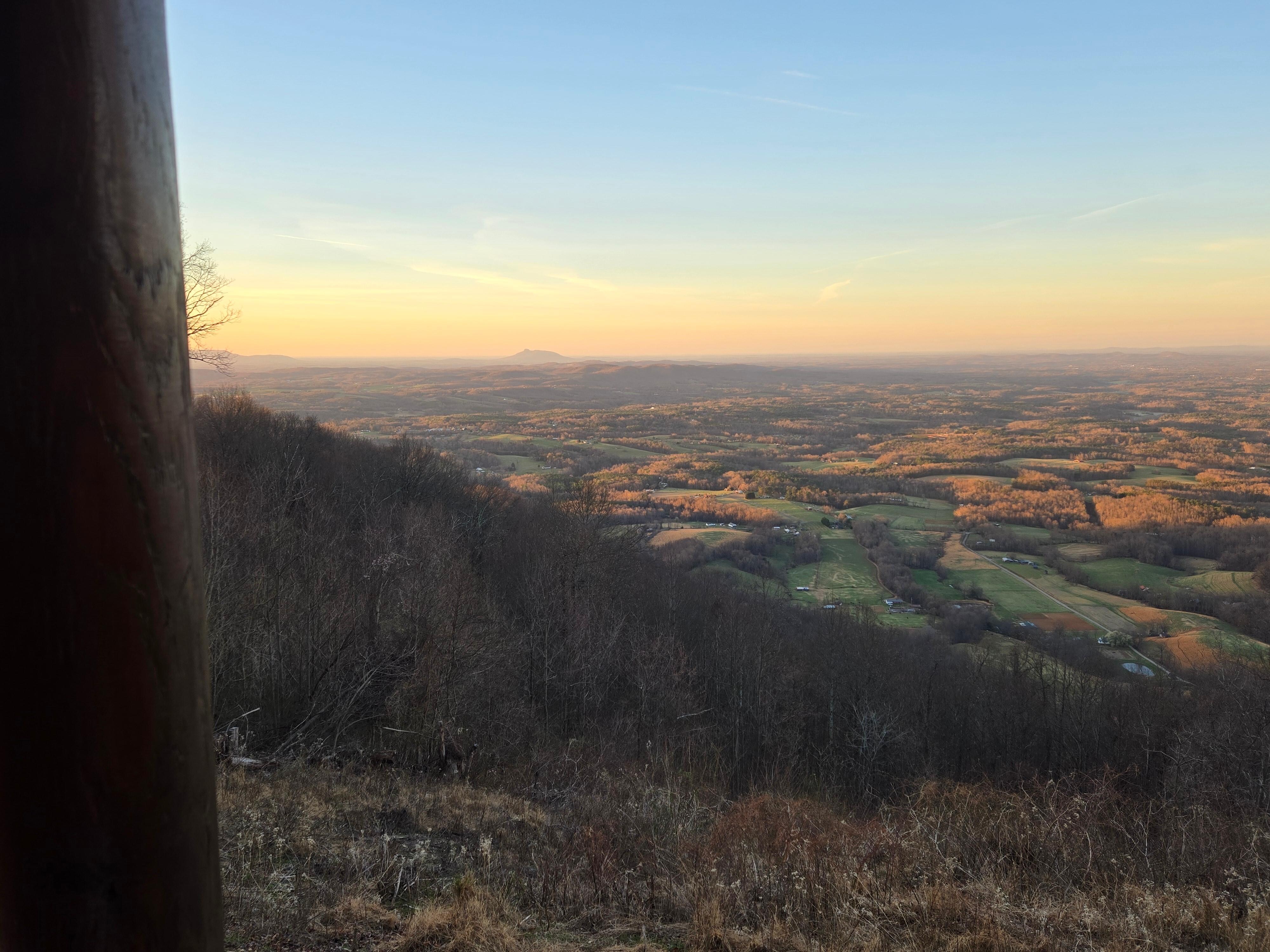 Thank you for checking our listing! We’re excited to have you share in our wonderful get-away. Our cabin is located in Patrick County, VA on Groundhog Mountain just a couple minutes off of the Blue Ridge Parkway. It offers an incredible view of rolling foothills, mountains, and peaceful farmland. Our view encompasses Pilot Mountain, Hanging Rock, Sauratown Mountain, Stone Mountain… just to name a few landmarks! We have both an upper deck and a very private, lower patio—each having a spectacular view of the Piedmont, below. During the day, you can sit on our upper deck or venture below to soak in our hot tub in perfect peace, taking in the quiet scene of farm life below and enjoying the vast beauty around you. In the evening, you can enjoy breathtaking sunsets… like a massive, dynamic painting masterfully completed before your eyes! It never ceases to amaze us that, regardless of how often we take in this beautiful, peaceful view, we come away feeling rejuvenated and with renewed perspective. The scene is an ever-changing beauty from one day to the next and even hour to hour.