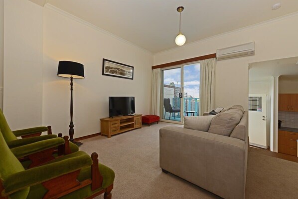 Inside, guests will find comfortable furnishings with attention to detail that blends modern convenience with period charm. Accommodating two guests, the space provides a cozy yet refined atmosphere, with amenities that cater to comfort and relaxation. Large windows allow for plenty of natural light, offering views of Battery Point’s charming rooftops and streetscapes, and there's a well-equipped kitchen and a cozy lounge for unwinding after a day of exploring.