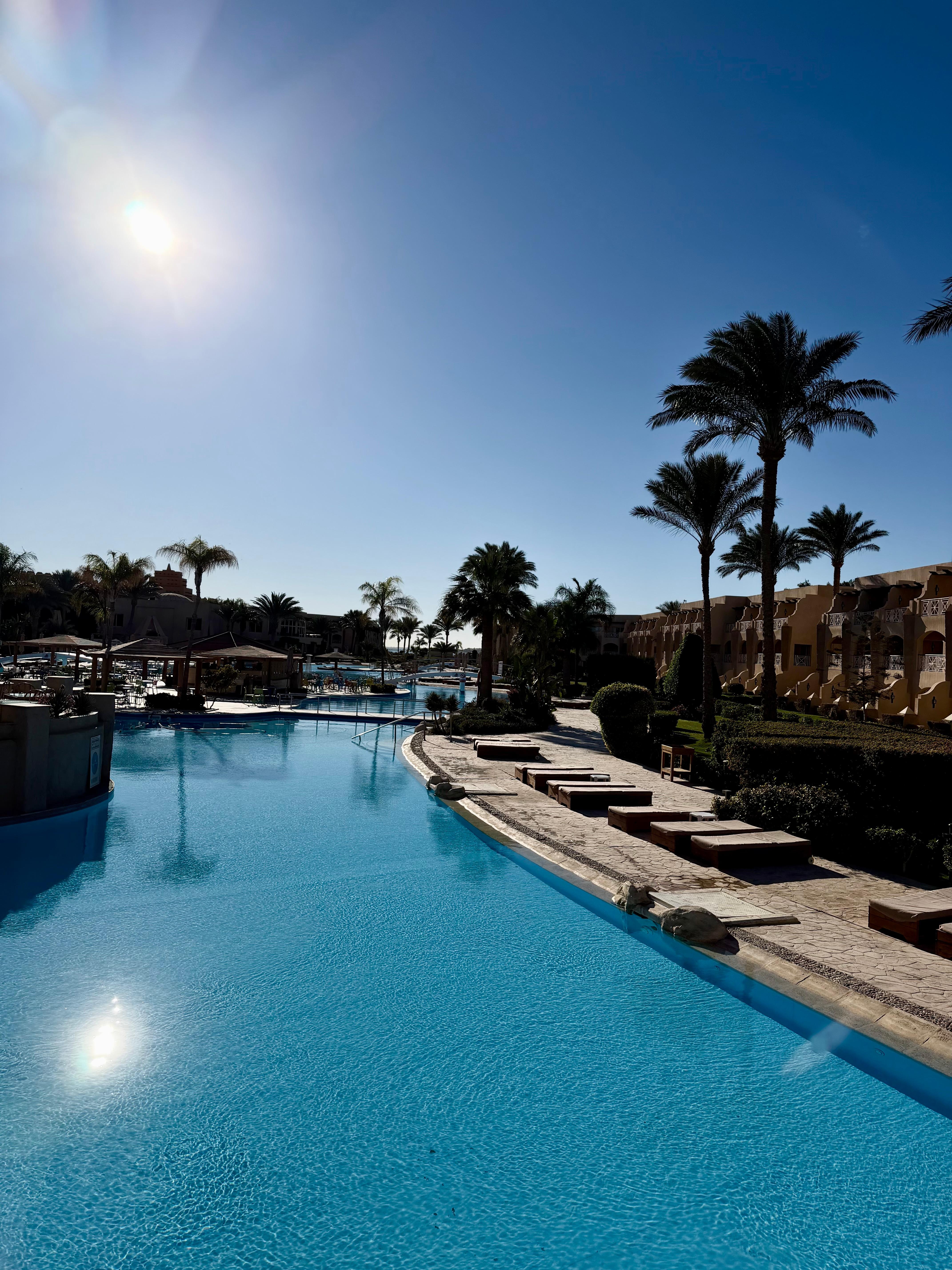 Das Hotel ist zwar etwas in die Jahre gekommen, aber alles in allem okay. Das Buffet war sehr reichhaltig und abwechslungsreich und das Personal war sehr bemüht und freundlich. Nach 1 Woche Aufenthalt wiederholten sich die Speisen, was aber wohl normal ist. Hervorzuheben ist die tolle Silvesterfeier mit einem gigantischen Buffet. Der Strandabschnitt ist sehr schön, das eigene Korallenriff super zum Schnorcheln und es gab nie einen Kampf um die Liegen, sondern es waren immer ausreichend zur Verfügung. Den Pool haben wir nicht getestet, was vermutlich auch an der Jahreszeit liegt- wir sind aber sowieso eher die „Meerbader“. Es war aber tatsächlich in der gesamten Woche niemand im Pool und Rutschen waren außer Betrieb.