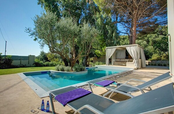 Stylish Romantic Retreat, A/C, 2 Private Pools, Garden with Ancient Trees & Sea Views - Near Spartia