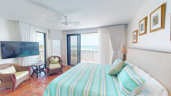 Stunning Ocean Views: As soon as you step inside, you’ll be greeted by floor-to-ceiling sliding glass doors that offer an uninterrupted, panoramic view of the Atlantic Ocean. The wrap-around balcony is perfect for dining al fresco, morning coffee, or simply taking in the fresh ocean air and stunning Key West sunsets.